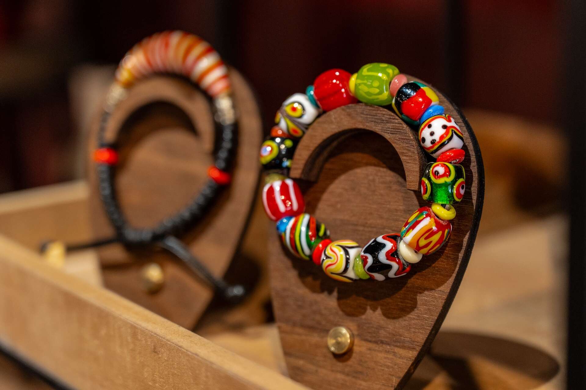 琉璃珠是由琉璃燒製而成,排灣族視琉璃珠為高貴的象徵。每一顆琉璃珠都有不同的故事,也代表了特別的意義,如:避邪、財富、榮耀等。色彩豐富的琉璃珠可串成項鍊、手環、頭飾等,造型也十分多樣。