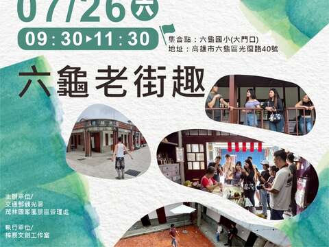 跟著在地導覽腳步,走進六龜老街的時光巷弄,探尋一段段被歲月珍藏的生活記憶。本次走讀小旅行將造訪六龜老街生活核心地帶,包含傳承數十年的老字號清甘食品行、蘊藏漢方智慧的太和堂中藥房、富有歷史底蘊的洪稇源商號,以及見證日治時期風華的池田屋。每一站不只是空間,更是人情與記憶的交織點。透過在地故事、文化脈絡與導覽互動,帶領您重新認識六龜的舊時光與新風貌。邀您一起來體驗屬於山城的老街魅力,讓雙腳丈量土地,讓心靈連結過去與現在!