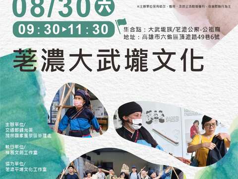 跟隨荖濃文化工作室的夥伴腳步,一起走入大武壠族的文化聚落,展開一場深入土地與記憶的走讀旅程。活動將帶領參與者感受族群在信仰儀式、生活日常與自然環境中的緊密連結。從古道遺跡、聚落脈絡,到傳統知識與文化展現,透過導覽與交流,讓人更貼近大武壠族的歷史記憶與當代轉譯。