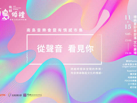 由「Sapaivai文化傳創團隊」以戲劇與歌謠交織的方式,重現魯凱族以歌傳情的浪漫記憶;「鍾天雷feat.洪芬妮」將演出魯凱族古謠中最難詮釋的男女情歌,以獨唱與對唱傳遞真摯情感;喜愛原住民圍舞熱情節奏的觀眾,也不能錯過「哈雷樂團feat.柯美金」透過圍舞祝福新人,展現族群傳統婚禮中的歡樂氛圍與集體祝禱;「FOCUS樂團」與「三十而立樂團」則以嘻哈、搖滾等現代語言,唱出青年對部落、族群與自我認同的深層連結,最後由「貳行程feat.禮納里陸上競技隊學生」融合古謠與創作歌曲,訴說新世代對土地的熱愛與文化的自覺與承接,讓音樂會不只是音樂會,更添文化傳承的深度。