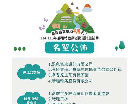 「特色業者徵選計畫」入選業者名單