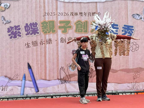 本次活動吸引20組大小朋友報名,活動設計鼓勵親子共同運用環保素材、回收物件或自然元素進行創意裝扮,從紫斑蝶的外型特徵、色彩紋路,到其遷徙行為、生態環境與保育概念,發揮想像力進行舞台呈現。透過創作與走秀過程,不僅展現親子合作的成果,也讓孩子在實作中理解紫斑蝶與自然環境之間的關係,培養對生態保育與永續發展的認同感。