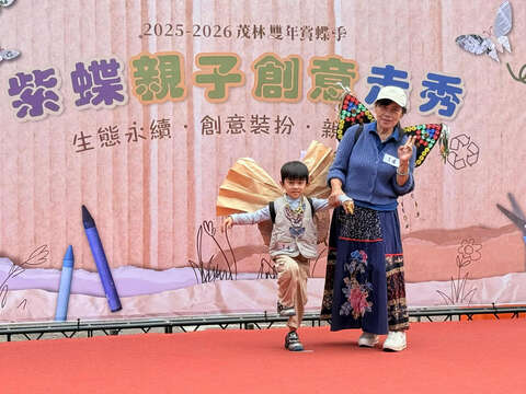 茂管處柯建興處長表示,紫斑蝶不只是自然景觀,更是茂林重要的生態資產與地方意象。透過「紫蝶親子創意走秀」,希望打破傳統靜態解說或單向教育的方式,改以親子共學、共創的活動模式,讓生態教育從舞台延伸到家庭,進而深化民眾對紫斑蝶保育議題的關注與理解。