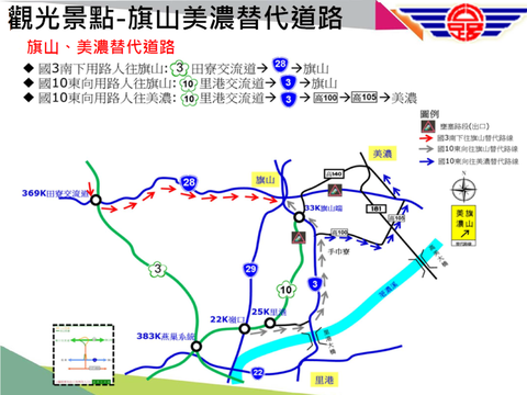 台3線(里港河濱公園)→台22線(高樹)→台27線→高132線(茂林牌樓廣場、布魯布沙吊橋) →高132線(龍頭山小長城步道、多納古戰場、紅塵峽谷)。