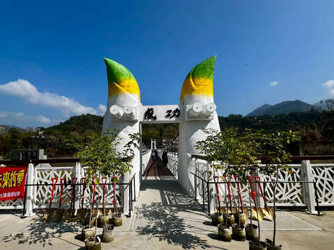茂管處柯建興處長表示,植樹節的核心精神在於「前人種樹,後人賞花」,成功吊橋是荖濃溪畔的觀光景點,也是地方情感連結的橋梁,在114年完成整建後,純白色的橋身展現出全新的氣象,我們更進一步思考如何提升整體的旅遊深度,因此今日特別選用紅花風鈴木,就是希望透過其盛開時的粉紅視覺衝擊力,與簡約優雅的白色吊橋形成強烈的美感對比,將此地轉化為具備「季節花賞」價值的遊憩熱點。柯處長進一步指出,這場活動不僅是為了營造地景美學,更是藉由植樹行動實踐低碳旅遊目標,並透過連結在地育幼院與社區居民,落實社會共融與環境永續,讓今日種下的每一棵樹苗,都成為六龜觀光與生態共榮的綠色種子,共同守護這片重生的家園景致。