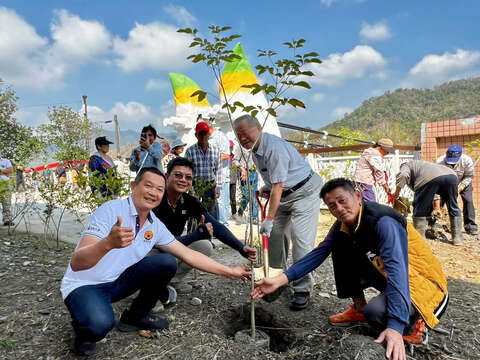 活動現場洋溢著春天的生機,六龜育幼院的師生們親手在土坑中扶正樹苗、踏實土層。院長感性地表示,植樹是一項長遠的守護,就像教育孩子一樣需要細心呵護;看著曾經損壞多年、如今在114年修復如新的成功吊橋,孩子們能親手為橋畔種下美麗的紅花風鈴木,更能在心中建立起與家鄉土地的深厚連結。