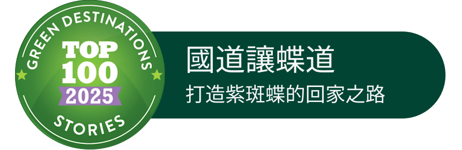 紫斑蝶是世界二大越冬型蝶種。每年 11 月,數十萬隻紫斑蝶遷徙至茂林山谷避冬;隔年 3 月,牠們啟程北返。然而,北返途中行經國道 3 號雲林段時,常因車流氣流導致大量路殺。為了這群嬌客,我們啟動了全球首創的「國道讓蝶道」。